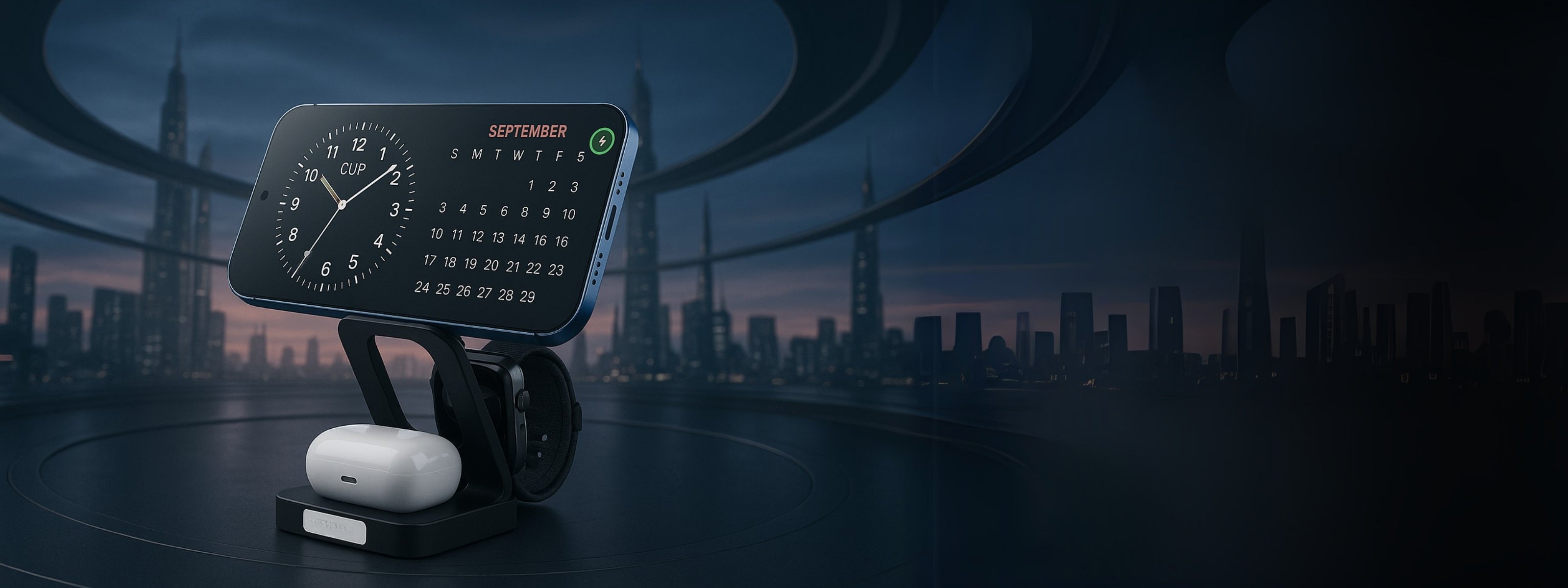 Say goodbye to tangled cables and cluttered nightstands. The 3-in-1 Wireless Charging Station is your all-in-one power solution.