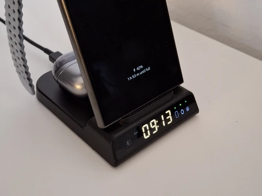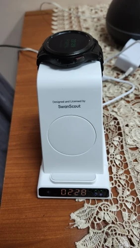 The Swanscout C01 Wireless Charging Station is the ultimate solution for charging your Samsung devices, including the Galaxy S25, S24 Ultra, S23, Z Flip, Z Fold, as well as the Galaxy Watch 8, 7, and Buds 3 Pro. This versatile charging station allows you to power up multiple devices simultaneously, making it an ideal addition to your home or office setup. The sleek design complements any environment while ensuring that your devices remain organized and easily accessible. With its advanced technology, the C01 provides a seamless charging experience, eliminating the need for multiple cables and chargers. Whether you are at your desk, in the living room, or on the go, the Swanscout C01 is designed for convenience. Simply place your compatible devices on the charging pad, and let the station do the rest. It supports various Samsung models, as well as other Qi-enabled devices, ensuring that you can keep all your gadgets powered up without hassle. The built-in cooling fan helps maintain optimal charging temperatures, enhancing the longevity of your devices. - Compatible with a wide range of Samsung devices, including Galaxy S25, S24, Z Flip, Z Fold, and Galaxy Watch models. - Supports wireless charging for earbuds, including Galaxy Buds 3 Pro and AirPods. - Max output power of 15W for phones, 5W for earbuds, and 2.5W for watches, ensuring efficient charging. - Sleek and modern design that fits seamlessly into any space. - Built-in cooling fan to prevent overheating during charging, promoting device safety.